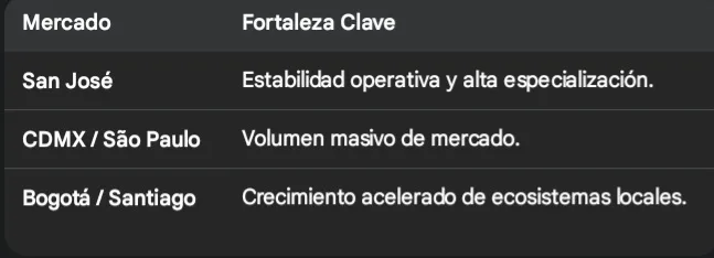 San José ya compite directamente con gigantes regionales como Ciudad de México, São Paulo y Bogotá.