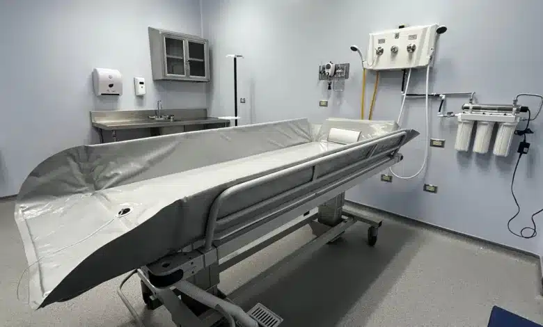 Además, se cuenta con grúas para la movilización del paciente y una camilla con ducha eléctrica con sistema de desagüe y la capacidad de soportar hasta 200 kilogramos, lo que permite la realización de los procedimientos con mayor seguridad y eficiencia.