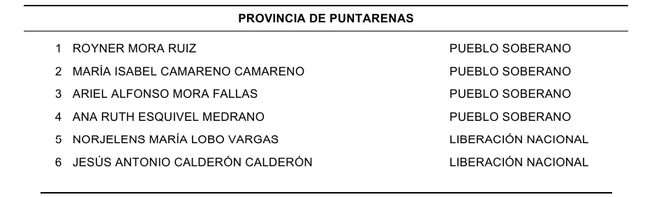 En el caso de la provincia de Puntarenas contamos con seis diputados que nos legislarán durante el 2026 hasta el 2030.