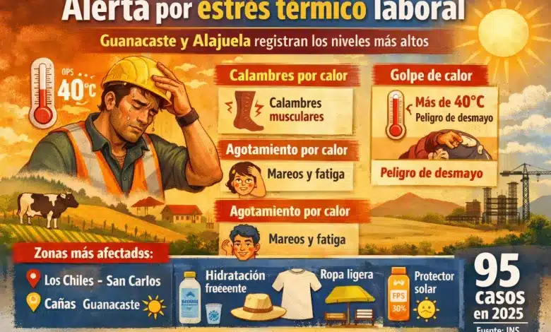 Según datos del Instituto Nacional de Seguros (INS), durante el 2025 se registraron 95 personas afectadas por estrés térmico.