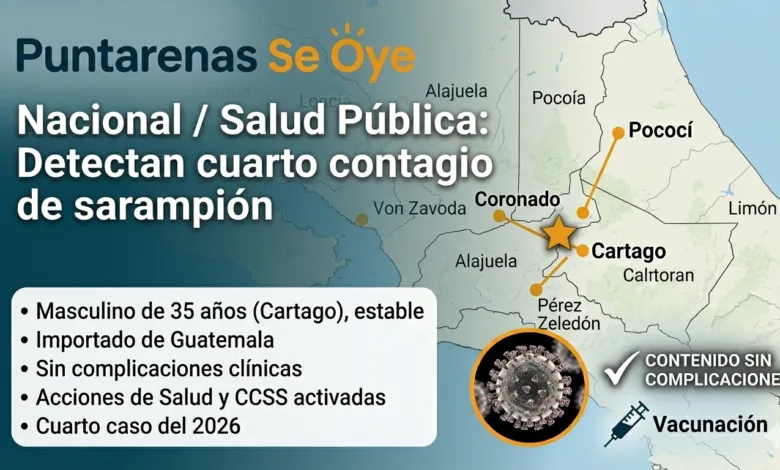En Costa Rica el último endémico sarampión fue registrado en 1999. En este 2026 se han registrado tres casos importados o asociados a la importación, uno en Pérez Zeledón, otro en Pococí de Limón y un tercer caso en Coronado.